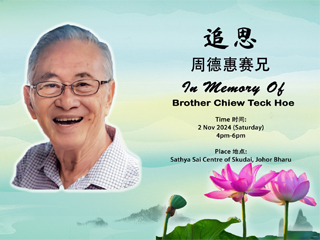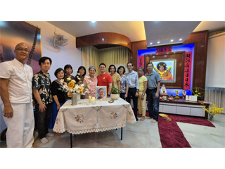 追思会一开始,大家诵念真言,唱响一首首他谱写的赞歌。接着多位赛兄姐陆续分享他们与周赛兄的相处故事。杨孔伟赛兄分享了与周赛兄共事的美好回忆,以及他生前执行任务时严谨认真的态度。在播放周赛兄回顾记录的演示文稿时,现场沉浸在一片感恩与不舍的氛围中。谢云光赛兄和纪木英赛姐也上台分享与周赛兄的相识过程,并感恩他为赛中文组的付出,实堪作众信徒之典范。最后,已故周赛兄的同修刘懋芬赛姐感恩大家的关怀和支持,让她与家人感到无比温暖。