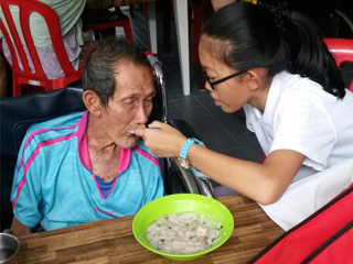 师生的到来得到了安老院负责人的热情接待。孩子们唱起赞歌,以歌声把世尊的祝福带给每位老菩萨。接着,孩子为每一位老人捧上香喷喷的午餐,让他们感到一丝丝的暖意。有几位老人家失去自理能力,孩子们一口一口地给他们喂食。整个活动在感恩的气氛下圆满结束。