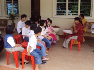 当Sitpah赛姐和学员们上课的同时,Vijaya赛姐和Tara 赛姐则引导学员的孩子画出他们对父母的心里话。之后,孩子与父母分享彼此的心声,场面温馨感人。在学员回馈的环节中,大家都认同妥善经营家庭关系的重要性,更要多参加类似课程以充实自己。