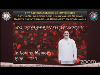 2020年在疫情笼罩之下,马来西亚德育班(SSE/SSEHV)学生迎来了不一样的学习体验,教学从实体课转向网课,同时也未能为德育课程毕业生举行毕业典礼。为了弥补遗憾,教育组于2021年1月23日下午4点至6点通过线上的方式举办第17届毕业典礼,共有93名2019学年的毕业生获颁证书。毕业生按照事前安排披上毕业袍,在各自的赛中心的神台前接受证书。大会也颁发模范生奖,成绩优异奖、最佳出席率奖,以及杰出论文奖,给取得卓越表现的学生,以资鼓励。今年有6名杰出资深老师获得表扬。大会也为于2020年逝世的前任沙迪亚赛人类价值观学院院长,Nackeeran赛兄默哀。最后,模范生带领全体毕业生庄严宣誓,立志报效母校与国家。