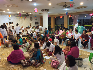 青年组成员于当天下午举办共修会,而其他营员则忙着准备当晚的中秋庆祝会。19日黄昏时分,中心张灯结彩,弥漫着浓浓的中秋节气氛。美丽的供桌上摆放了月饼,还缀满糕点、柚子、花生等贡品。各中心轮流呈献多项舞蹈、话剧、合唱等文娱节目助兴。天黑以后,青年组员装扮成神仙的模样带领众人提着灯笼沿街游行,十分热闹。