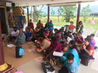 在恩惠之家,青年组员与长者们一起学瑜伽养生,德育班学生则陪他们做填色活动,并送上诚挚的祝福和礼物。接着游学团拜访拥有175年历史的耶稣圣名堂,了解该教堂的历史及文化。活动的最后一站是马里安曼兴都庙,大家在庙里唱赞歌,用歌声赞叹诸菩萨,自己心中也法喜充满。