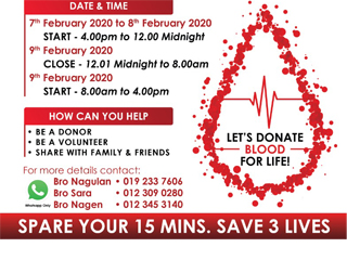 服务组主任Mohana赛兄认为此项活动无异于一分祝福,也见证了人类互相帮助的本质。他说,“我要祝贺所有参与献血运动的团队,而各界人士的支持真的令人振奋。献血不但有益于自己的健康,还能为他人开启新生的大门。”