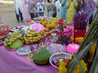 2月7日上午8点,信徒们会聚于N7宿舍后的草场上祭拜天公。祭坛上摆满斋菜、鲜花、糕点、水果等供品。大家轮流上香祈福,并一起念诵Gayathri真言。祭祀完毕焚献天公金。庆典活动也吸引了不少各族信徒参与其盛。