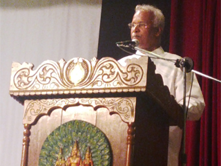 卸任理事长Suresh Govind教授致词感谢大家不辞路途遥远,踊跃出席这重大日子,并讲述了过去5年在全体理事秉持精诚团结的宗旨,作出了不少的贡献。本届大会首次邀请了多位政府官员和跨宗教服务友好组织(FGIS)代表出席,同时在会场设立展架展示赛组织近年来推动的各项公益慈善活动。