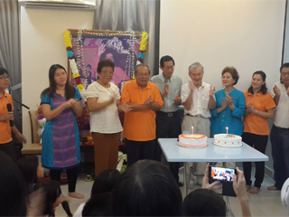 茶点过后,全国中文组主席邝润培赛兄致词时播放了一段从印度赛电台下载的世尊讲道广播;世尊的特卢固文讲道穿插了周德惠赛兄的中文配音,让华裔信徒了解讲道原文的意思。周赛兄多年来的翻译工作使大家受益颇深。现场也播放几段外地中心寄来的致敬视频短片与贺词,表达了他们对周赛兄的敬意。