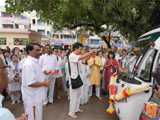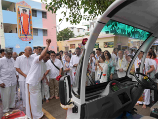 这是该分会捐赠的第二部电动车辆。新车将汇入现有车队,进一步提升道场内交通的便捷与效率,尤其惠及长者、行动不便及有需要的信众,体现了斯瓦米对每一位信众的深切关怀与护念。