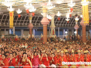 2月11日下午5点,节目以点灯及献传统礼品仪式拉开序幕,全体信众一起念诵峇峇与佛菩萨圣号祈福。筹委会主席邝润培赛兄在致词时讲述本次庆典主题,“父母-我们的宝藏”,并呼吁信众发愿改掉一个坏习惯,同时养成一个好习惯,使这一次的朝圣变得更加充实。印尼苏拉威西岛海啸救援行动负责人Danesh Vatwani向大会报告赈灾的所闻所见所思,听者无不动容。接着口琴队和华乐团演奏动听的峇赞和新年歌曲,赢得热烈的掌声。