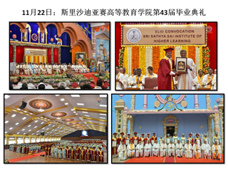 11 月 22 日,斯里沙迪亚赛高等教育学院(SSSIHL)第43届毕业典礼在普尔纳詹德拉 礼堂举行。美国国家科学基金会主任 Sethuraman Panchanathan 教授是典礼主宾。SSSIHL院长 Raghavendra Prasad 教授提交年度报告,展示了该学院在学术、研究和服务方面的进展。本届毕业礼有463人领取学士学位,其中22人学术表现优异获颁金牌奖,以及14人获得博士学位。