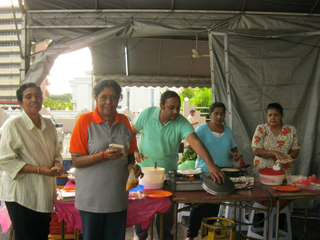 这三天虽然很辛苦,但是人人都很开心和全心全意的付出。厨房里除了妇女组马不停蹄地忙里忙外,几位赛兄们也大显厨艺。饮料部分是由服务组负责,打理的井井有条。青年组贩卖红豆冰,印度同胞们的Chapati和Dosa薄饼也在短短的时间内卖得一块都不剩。妇女组的熟食、小吃、罗惹(Rojak)、Bubur ChaCha等糖水售卖摊也忙的不可开交。当然也不忘感激负责洗盘刷碗,打扫卫生的兄弟姐妹。