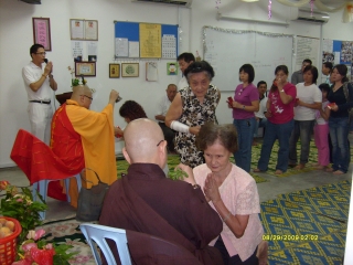 法师也在弘法会开始之前为大家撒净,祝福大家身心健康。信徒们也在会后供养两位法师,法师们也颂经加持大家。本组的医药服务局主任刘建利医生担任法会的主持人。这次的活动获得了信徒们踊跃响应。大家心中充满法喜。爱国捐血运动则为法蒂玛专科医院筹获42包血浆。