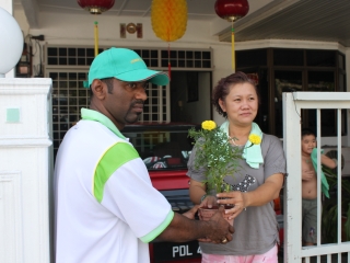游行队伍由一辆用环保装饰覆盖的四轮驱动车领头,车上载满了花草和布告板,一路上向公众宣扬世尊的道德价值观和环保讯息。居林市议会捐赠100棵树苗,让步行者沿途分发于所经过的民宅居民,以鼓励植树减碳。队伍中有两位双溪大年赛中心的锡克裔鼓手伴随,他们的激昂鼓声和年轻人“拯救自然、庇护大地” 的欢呼声,为现场增添热闹欢喜的气氛。
