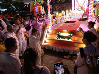 适逢薄伽梵斯里沙迪亚赛诞辰100周年,全球赛组织麻坡赛恩赐分会为此精心打造了一辆百年纪念花车参与游行。薄伽梵的庄严圣像矗立于繁花簇拥之中,散发着神圣而祥和的氛围。沿途,虔诚的善信双手合十、恭敬礼拜;不少商家亦在店门前设下神案,焚香祭拜。此次花车游行,共有百余名赛信徒全程参与,不仅见证了盛况,更促进了彼此间的深刻交流与情谊连结。