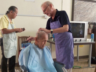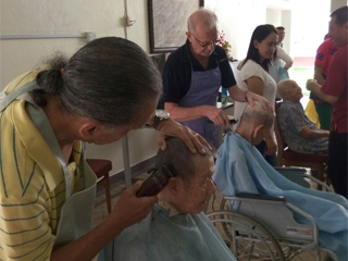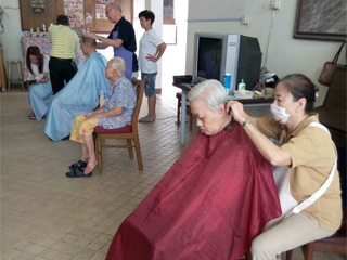 槟岛东北县中心同修们于9月4日早上到槟岛病老院(Home of The Infirmed & Aged)为50余位长者提供免费剪发服务,让他们保持整洁的外表与卫生。这项每月一次的上门服务方便高龄体弱老人,是东北县中心社区服务计划的其中一环。