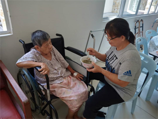 隔天中午,妇女组到双溪赖银禧老人院为长者们提供素食午餐和长者最爱吃的甜点,红豆冰。义工们也到病房为老弱病人供上白米粥。大家的的爱心举动让长者们露出幸福的笑脸。