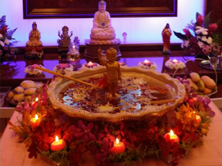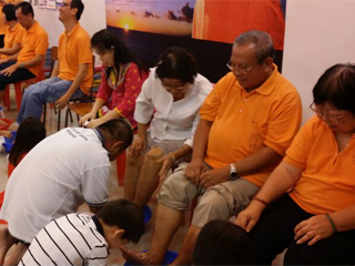 士姑来赛中心于5月10日峇赞过后举行卫塞节浴佛仪式及母亲节庆祝活动。浴佛台布置得简单却很精致,以胡姬花与莲花烛围绕四周。大家依次排队浴佛,祈愿能洗涤身心,去除烦忧。接着,在场的子女为父母及长辈进行浴足,表达心中感恩之情,并献上鲜花及祝福吉祥。