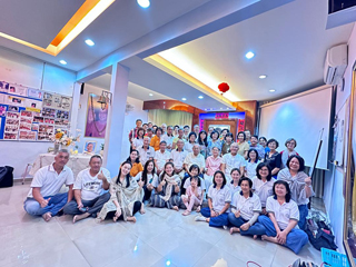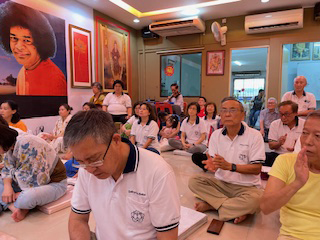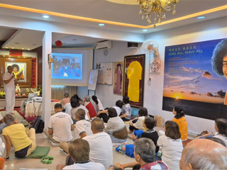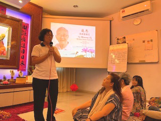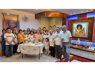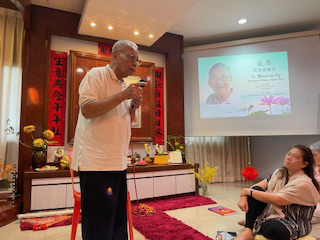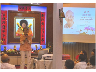 追思会一开始,大家诵念真言,唱响一首首他谱写的赞歌。接着多位赛兄姐陆续分享他们与周赛兄的相处故事。杨孔伟赛兄分享了与周赛兄共事的美好回忆,以及他生前执行任务时严谨认真的态度。在播放周赛兄回顾记录的演示文稿时,现场沉浸在一片感恩与不舍的氛围中。谢云光赛兄和纪木英赛姐也上台分享与周赛兄的相识过程,并感恩他为赛中文组的付出,实堪作众信徒之典范。最后,已故周赛兄的同修刘懋芬赛姐感恩大家的关怀和支持,让她与家人感到无比温暖。
