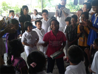 过后,每位德育班同学轮流递交礼物给儿童院的小朋友,大家互相拉手,面对面的近距离交流,场面愉悦热闹。接着展开一连串的趣味游戏,小朋友们玩得很开心,笑声阵阵。活动结束后,大家一起共进午餐,并合影留念。