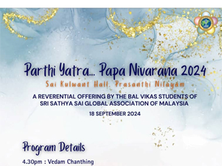 斯里沙迪亚赛全球协会马来西亚分会的心育团队于 2024年9 月13日至20日举办百善地尼乐园朝圣之旅。这次为期一周的朝圣之旅吸引了来自全国各地的参与者,并于9月18日在赛古鲁湾大殿举行首届马来西亚心育课程毕业典礼。