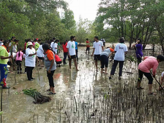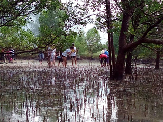 第二天一早,营员们乘巴士到海滩参与红树林植苗活动。大家精神抖擞,用自己的双手在海滩上种下一棵棵树苗,为自然保护作出小小的贡献。