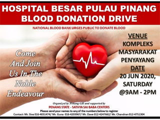 槟州赛组织于6月20日上午9时至下午2时配合中央医院,在槟城爱心大厦设立的献血站举行献血运动。在管控令期间,民众出入不方便,义工们积极通知健康市民参与献血,并做好献血者的防护工作以及血站的清洁消毒。槟城中央医院血库对赛组织协助筹得63包血浆的义举,特予嘉勉。