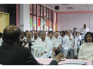 当天,雷迪医生分享了他与世尊的丰富经历,听来鼓舞人心。很多年前雷迪医生的父亲问世尊说,世尊吃得如此少,是否从宇宙中的五大元素吸取能量,世尊回答说其实是五大元素从祂那儿获取能量。有一次,世尊和雷迪医生共乘一辆车,世尊向他借100卢比施与一位贫妇。返回精舍后, 世尊执意交还给他500 卢比,雷迪医生拒绝不了,只好收下。他从中领悟到,给与神的付出,祂将多倍的回报于你。雷迪医生知识渊博,充满真知灼见的演说让全场观众受益匪浅。