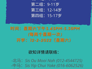 2022年的课程将于2月12日开学,同样也是每两周上一次网课(星期六下午3时45分至5时30分)。以下是德育班的资讯和新生报名表格,有意为孩子报名的家长敬请填表。