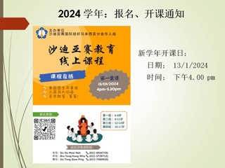 2024 年开课日已定在1月13日,敬请全体同学及家长垂注。中文组也决定为没有电脑设备的贫困生捐赠笔记本电脑,用于在线上课。