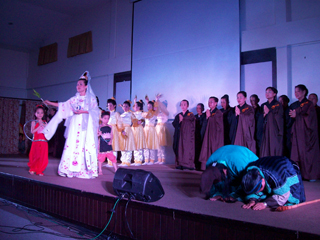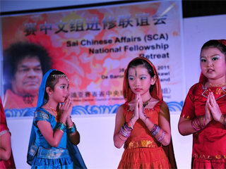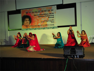 晚会的开场节目是思菩提和东甲赞诵组的合唱团呈献数首赞歌,以风琴伴奏,团员用特有的演唱风格,歌颂慈悲为怀的赛世尊。接着浮羅交怡中心德育班同学表演印度舞,7位小演员穿着鲜艳夺目的服装,随着耳熟能详的Gayatri mantra配乐,柔美地展示了绚丽的舞姿,全场响起热烈的掌声。