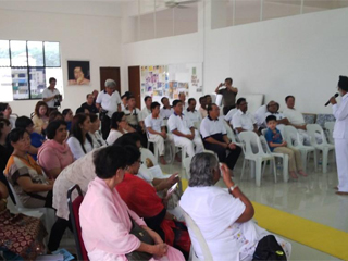 午餐过后,20多位来自新加坡的信徒到达中心参观,并参与下午3时开始的《父母讲座会》。杨孔伟赛兄说每位父母的教养方式是仁者见仁、智者见智,不可一言而论。他分享作为父母的感受和见解,强调父母要不断地提升自己,才能把正确的价值观灌输给儿女。他在讲座尾声带领大家齐诵主罗摩圣号,祝福天下所有的儿女健康快乐。