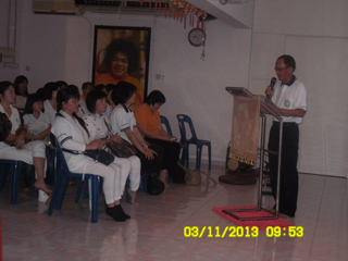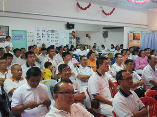 士姑来中心主席纪木英赛姐向大会报告柔佛州中文组的活动,如自我提升课程(STP)、妇女组‘光’课程、优质父母讲座等等。杨孔伟赛兄主持一项用问题表进行的现场调查,以得到信徒们对中文组活动的反馈。他也借世尊讲述的一则故事,指出当把一切以神为根本,从而有信心的在生命中做出正確決定。