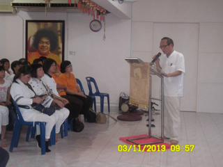 柔佛州中文组修学营于11月3日在东甲赛中心召开,逾120名信徒出席。修学营于早上9点半开始,筹委会主席戴友池赛兄,柔佛州赛组织总协调王庆玲赛兄相继致词,欢迎远道而来的各位信徒。王赛兄表达了他对柔佛州中文组发展的期望。在热烈的掌声中,柔佛州中文组主任谢云光赛兄跟大家分享他建造Chaitanya Jothi博物馆的过程,大家无不对其独特的经验而啧啧称奇。
