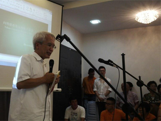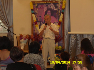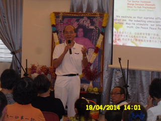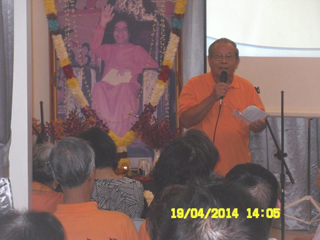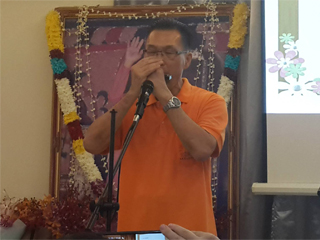 茶点过后,全国中文组主席邝润培赛兄致词时播放了一段从印度赛电台下载的世尊讲道广播;世尊的特卢固文讲道穿插了周德惠赛兄的中文配音,让华裔信徒了解讲道原文的意思。周赛兄多年来的翻译工作使大家受益颇深。现场也播放几段外地中心寄来的致敬视频短片与贺词,表达了他们对周赛兄的敬意。