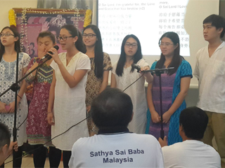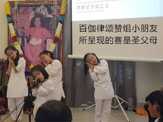 音乐会一开始由来自新加坡的林玉清,玉莲,玉珠三姐妹上台开场。在三位印裔同胞的风琴和玲鼓,及郭文龙赛兄的小提琴的协奏下,她们以娴熟的唱功演唱了三首歌曲:《唤一声sairam》,《神圣导师在峇地》,《主罗摩我顶礼》。东甲赛中心合唱团献上优美动听的《赞叹观音菩萨慈悲》和《 要用爱来开始一天》。接着懋芬赛姐演唱《在无人爱我的时候》。她优美、哀愁的歌声倾诉而出,大家被带入到歌曲的意境中,深受感动。新加坡的佩琼赛姐领唱《让我们引吭高歌》,然后百迦律中心的水平赛兄以宏大的音量带动全场演唱了雄浑壮丽的《至尊神首Gopala》。百迦律中心儿童德育班的四位小妹妹用手语演绎大家耳熟能详的赞歌 ——《赛是圣父母》,可爱的小小歌唱家表现精彩,赢得了满堂喝彩。