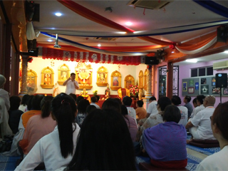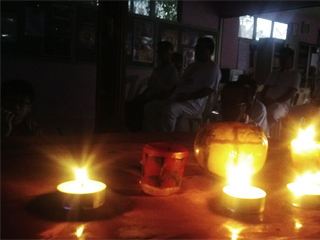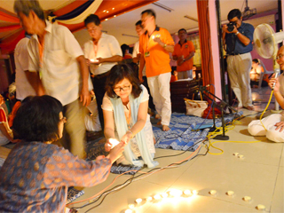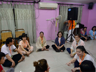 修学营于傍晚7点开始,峇赞过后,古晋赛中心主席Narayanan教授首先致欢迎词。接着大家分组进行破冰活动,组员相互介绍并做个人信赛见证。Rebecca赛姐上台分享她在抗癌路程上经历的神迹。最后大家点燃烛灯,在神坛前把烛灯摆成心形图案礼赞世尊,为愉快的一天划上完美的句号。