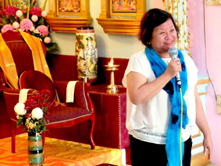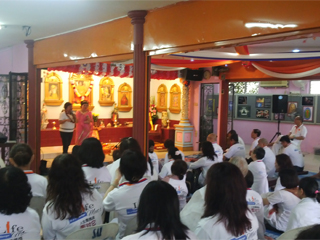 5日清晨,木英赛姐带领大家冥思静坐,然后一起唱赞歌。筹委会主席黄武耀赛兄的开幕致词风趣幽默,笑声不断。当天的主讲人是香港女法官Isabella Chu赛姐,由蔡圆美赛姐充当翻译员。Isabella赛姐自 2013 年以来,每星期五休庭后就飞往印度百善地,以便能在星期六清晨参与达瞻,随后又于次晨飞回香港工作。她也致力于公益服务,对世尊的教诲全然信服,其虔诚令人动容。她说即便世尊的肉身已入灭,我们可以投身于无私服务行动中去体会世尊的存在。随后,大会邀请了专业舞蹈团为营员们呈现砂拉越各族群的传统舞蹈和音乐表演。