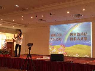 午餐过后,一位专业的婚姻家庭律师,蔡圆美赛姐以《夫妻之爱》为题给大家上了生动的一课。她风趣地说明了婚姻中的‘近与亲’;两个人能相濡以沫的在一起一辈子,靠的就是让对方感受到爱。