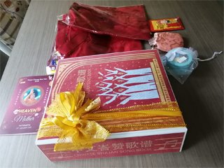 2020年1月31日,适逢百善地农历新年庆祝会,纪木英赛姐代表马来西亚赛组织华人组把一本歌谱集呈献在世尊圣陵前,祈求祂的祝福。
