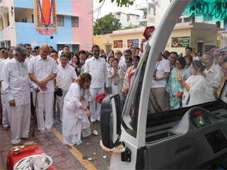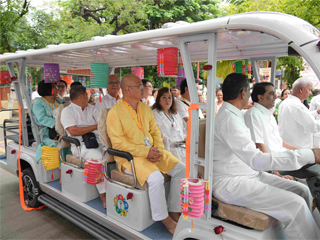 这是该分会捐赠的第二部电动车辆。新车将汇入现有车队,进一步提升道场内交通的便捷与效率,尤其惠及长者、行动不便及有需要的信众,体现了斯瓦米对每一位信众的深切关怀与护念。