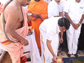 动土仪式于上午9时在信众诵经祈祷声中开始。斯里沙迪亚赛中央信托会成员Sri RJ Ratnakar, 秘书Sri Prasad Rao,及多位贵宾和政府官员莅临观礼。斯里沙迪亚赛中央信托会资助的Anantapur主要供水系统于1995年踆工,供水范围涵盖了731个村庄,超过125万人受益。信托会在11月举行的世尊诞辰周年纪念活动期间宣布了这项延伸工程。