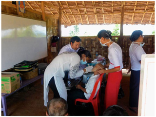 本次医疗营分两天进行,10月5日的第一天活动安排在仰光市郊Insein镇的盲人学校,为约120人进行体检和医疗。最常见的疾病是缺乏维生素,上呼吸道感染和牙齿问题。所有患者均获得配给复合维生素和驱虫药物治疗。