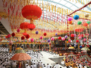 下午的庆典仪式‘亮点’是金辇游行。金光闪闪的辇车在信众的护送下,围绕百善地精舍巡游一圈,受众信膜拜。知名古典音乐家Abhishek Raghuram呈现了长达1小时的精彩演出,为庆典活动画上圆满句号。