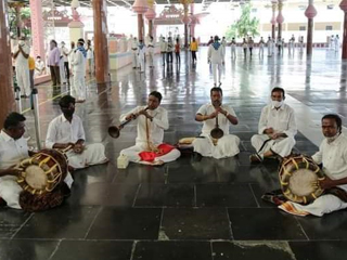 在防疫封锁期间,百善地精舍内的Omkar、Suprabhatam、Vedam和峇赞等崇拜活动照常举行,而信徒们受限聚令影响不可参与,只能通过网上直播参加崇拜。