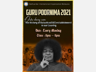 我们庆幸得到导师,薄伽梵斯里沙迪亚赛峇峇,赐予的圣爱与恩典。祂给我们指示了人生目标及通过爱与服务的途径以达到这目标的方式。今年导师节落在7月24日。为庆祝导师节的来临,沙迪亚赛国际组织发布一份题为“9封瑰宝”的学习指南,里面呈献了斯瓦米写给信徒、学生、老师及求道者的一些精选信件。这9封信为我们提供如持名、求知之道、坐禅和诚服等各种灵修的指导,指引我们达到“吾等皆圣灵,一切皆梵”的目标。沙迪亚赛国际组织也于7月24日导师节那天举办一场线上峇赞与信赛见证节目。