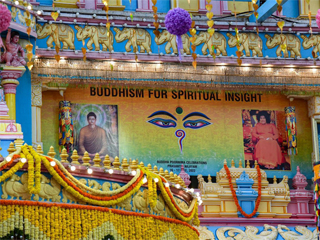 5月16日上午,精舍张灯结彩,佛旗招展,钟鼓齐鸣,僧团手持香盘法器引领众善信礼佛、点灯、供香及诵经祈福,为2天的庆典揭开序幕。除了卫塞节必备的浴佛法会,庆祝活动还有峇赞、讲座、文化表演及佛陀故事动画等多项节目,借此阐扬佛陀和世尊的慈悲救世精神。
