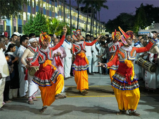 中央信托会执行长Sri RJ Rathnakar 于11日中午亲临赛喜乐全球会展中心出席一场座谈交流会,并于当天傍晚在象头神门区为一尊庄严白色佛像主持揭幕仪式。斯里兰卡信徒表演別具特色的仪式舞蹈,场面热闹。