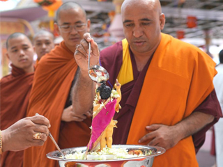 12日至13日一连两天在赛古鲁湾大殿举行的庆祝活动包括了:浴佛仪式、诵经、峇赞、主题演讲、佛曲合唱、舞蹈等节目,气氛庄严又和谐。
